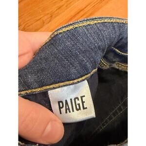 Classic PAIGE Verdugo Ankle skinny jeans crafted in premium blue stretch denim with a sleek, flattering silhouette and ankle-length cut.Features a mid-rise fit with skinny leg, five-pocket styling, zip fly with button closure, and subtle fading for everyday wear.Made in the USA of imported fabrics with a soft stretch blend (rayon, cotton, polyester, spandex) for comfort and shape retention.EXCELLENT pre-owned condition. No stains or holes observed; light natural wear consistent with normal use. Please review photos for full condition details.