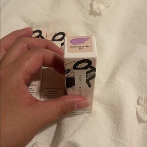 Experience vibrant shine with Fenty Beauty's Gloss Bomb Oil trio. Includes Frosted Bunz, Rose Amber, and Miss Jellyfish shades. Perfect for a glossy finish.