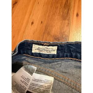 Classic Levi’s Premium jeans crafted in medium-wash blue denim with subtle fading, traditional five-pocket styling, and authentic workwear character.Designed with a mid-rise waist and straight leg silhouette, featuring button fly closure, belt loops, and durable construction for everyday wear.Made from sturdy cotton denim; measured at 17 inches flat across the waist, translating to approximately Men’s 34.GOOD pre-owned condition. Visible paint stains and light wear present as shown, adding a distressed, workwear look. Please review photos for full condition details.