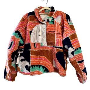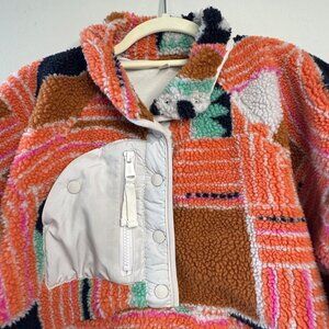 A fleece jacket that turns outdoor wear into a playful art canvas, blending bold geometric shapes with a cozy texture that'll make heads turn and spirits lift.