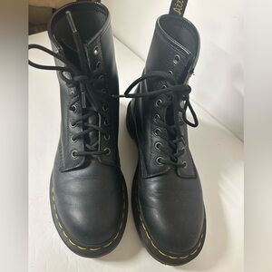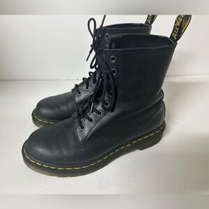 Dr. Martens Black Leather Boots with Yellow Stitching Size 8