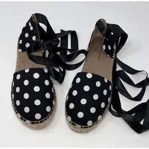 NIB Monroe & Main Polka Dot Ankle Wrap Espadrilles