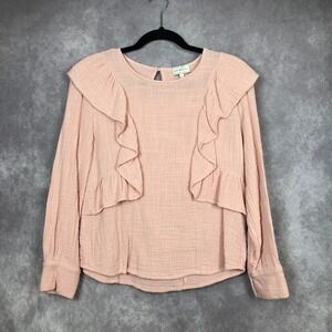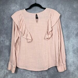 Lucky Brand Peach Pink Ruffle Long Sleeve Cotton Gauze Blouse TS3716-01 Small