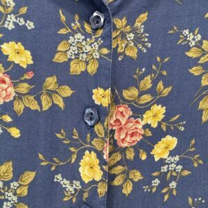 Vintage Floral Maxi Dress Button Down Blue Cottage Romantic Whimsical Women XL