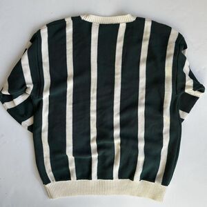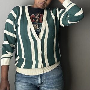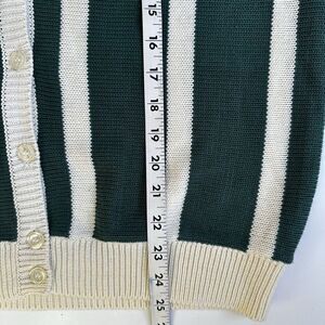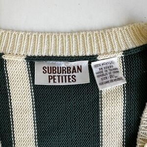 Vintage Suburban Petites Cardigan Sweater Green Cream Stripe Knit Women’s PL