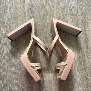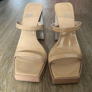 Jeffery Campbell Hustler Platform Sandal Nude Patent Leather Strappy Block Heels