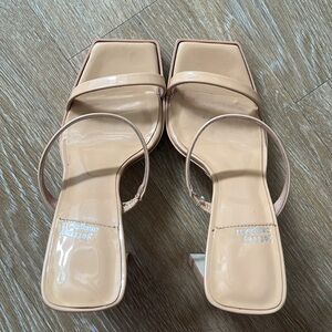 Classy simple strappy nude patent demure boho bohemian classic minimalist neutral party club going out