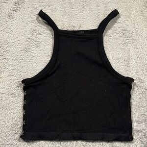 Forever 21 Babydoll Crop Tank Top Hook Eye Women's Junior's M/L Black