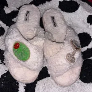 Women's white fuzzy slippers well worn