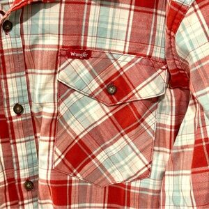 WRANGLER MENS Long Sleeve Red White Blue Plaid Western Button Shirt SIZE 2XL