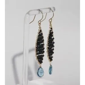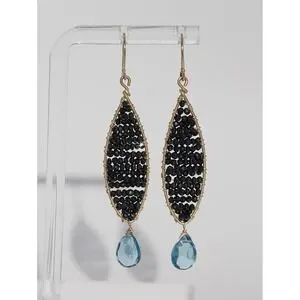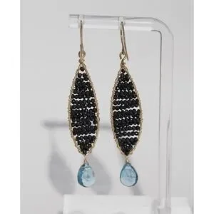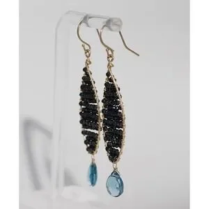 Mabel Chong Designer 14k Solid Gold Black Spinel Blue Topaz Dangle Earrings