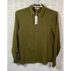 Cotton Citizen Mens Presley Slub Knit Shirt Sz L Olive Green LS Button Up