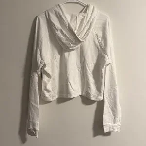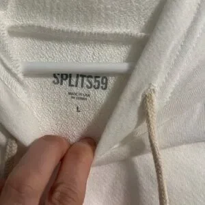 Splits59 Zoey Cropped Hoodie in Off White Size Large 100% Cotton Mid-weight stretchy fabric Cropped Drawstring hood Long sleeves Machine wash Approximate Measurements Bust 23" Length 21"