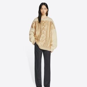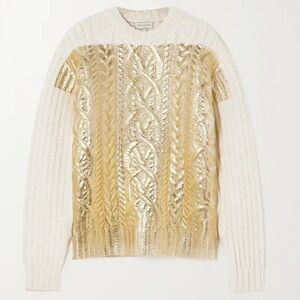 DRIES VAN NOTEN Metallic Cable-knit Wool Sweater In Ecru
