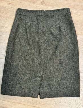 J.Crew Grey Wool Blend Tweed Pencil Mini Skirt, Women's Size 0. High-quality construction featuring a classic herringbone-style tweed texture. Perfect for business casual, office wear, or academic styling.
