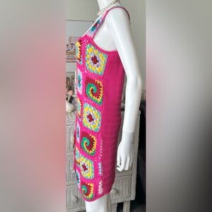 Cotton Emporium Granny Squares Knit Mini Dress in Multi Colored Size Large