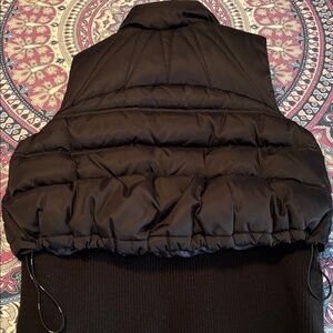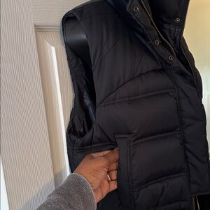 Stay warm and stylish with this sleek black puffer vest. Perfect for layering, it offers both comfort and fashion for any occasion.