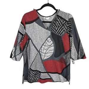 VTG Paloma Carmin Top Sweater Abstract Artsy 3/4 Sleeve Size XL Lightweight Soft Delicate Geometric Boho Vintage