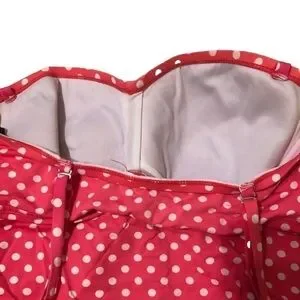 Super cute polka dot swim top with adjustable straps and gathered side seem.
