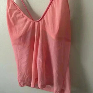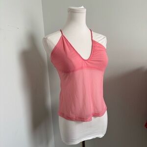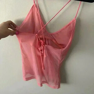 Obsessed with this vintage La Senza mesh halter top in the perfect bubblegum pink 🍬 Sheer, flirty, and lightweight with that early 2000s coquette vibe. Adjustable spaghetti straps and a soft stretch mesh feel. Super cute layered over a bralette or on its own for that dreamy, effortless look.