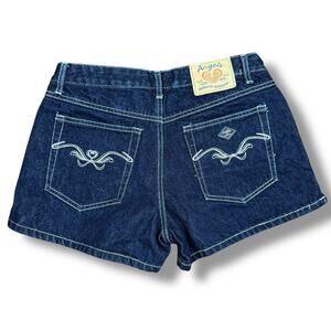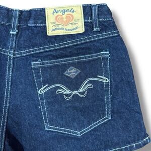 y2k angels denim shorts dark wash mid rise embroidered pockets size 9 closet find #y2k #angelsjeans #2000s #vintage #mcbling