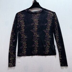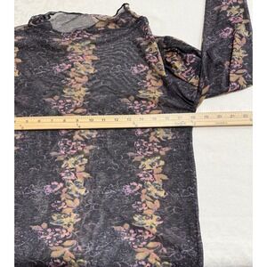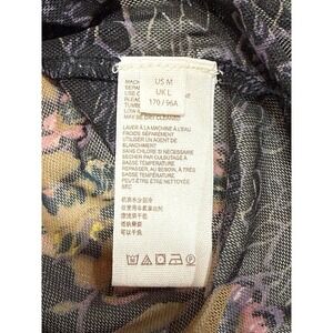 Free People Amber Womens Top M Sheer Black Brown Floral Mock Neck Long Sleeves