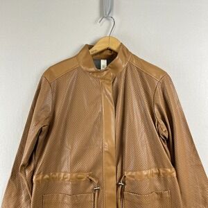 Marla Wynne Collection Faux Leather Perforated Jacket Full Zip Front Adjustable drawstring waist Size: Medium Chest: 21" armpit to armpit Length: 31" shoulder to hem Very good gently used condition with no visible flaws