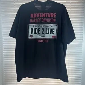 Harley Davidson Shirt Mens Extra Large Eagle Ride 2 Live License Plate Moto Gift
