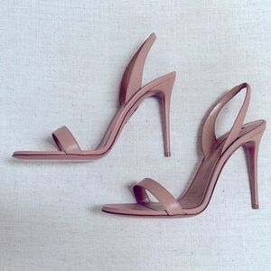 NEW Authentjc Aquazzura So Nude 105mm High Heel Stiletto Sandal Beige / Nude / Tan / Poudre / Neutral Pink Leather 39 $790 Retail