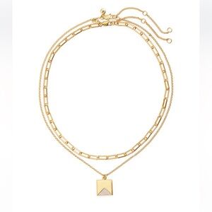 Madewell Palisade Gold Plated Brass Necklace Set, one with Inlaid Stone Pendant.
