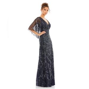Mac Duggal 9064 NWT EMBELLISHED CAP SLEEVE FAUX WRAP TRUMPET GOWN - NWOT