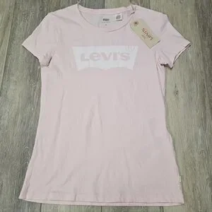 Levi's Perfect Crew Neck Graphic Tee Shirt Top Pastel Pink Fitted Women's XS
