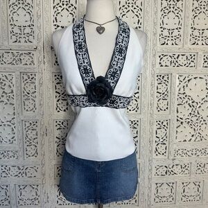 Veronique Young Black & White Beaded Sequin Fairycore Halter Top Sz 12