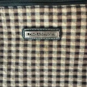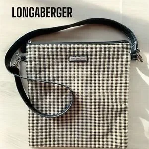 Keywords: LONGABERGER, crossbody, lightweight, thin, adjustable strap, minimalist, unisex, checkered, black khaki, fabric, casual, formal, versatile, stylish, pre-owned,