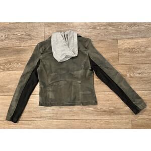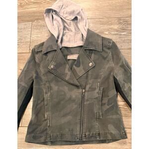 Marrakech by Anthropologie green camo moto jacket with detachable hood. Size womens XS.
