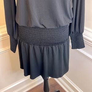 Kensie Long Sleeved Smocked Black Dress Size Medium NWT