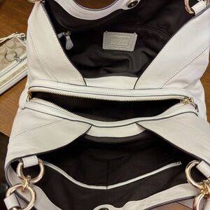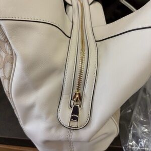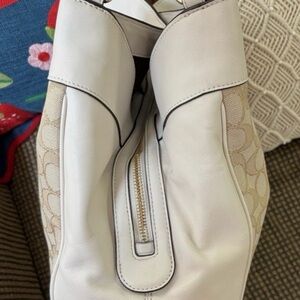 Elegant Coach women's bag in beige and white. Perfect for any occasion with its stylish design and premium quality.