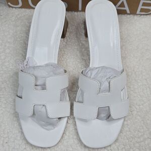 NIB JustFab Haidee Bright White Heeled Sandal Size 8.5