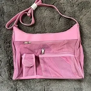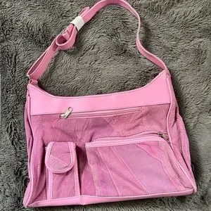 New Retro Pink Suede Haband Purse with Pocket - NWT