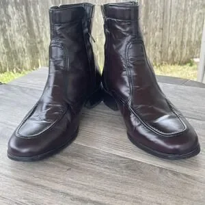 Florsheim Essex Boots Men 8D Red Cherry Leather Dress Ankle Side Zip Moc Toe 17074 18 Preppy Old Money Shoes