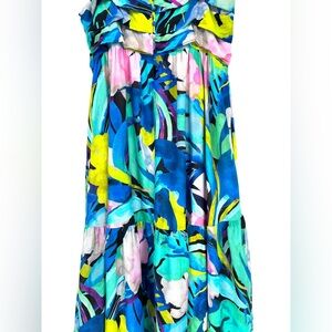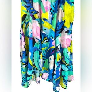 Anthropologie Sunny Hawaiian Floral Print Silk Blend Midi Dress Bohemian Size M
