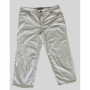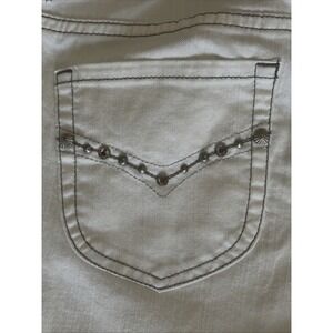 Chicos Size 1.5 US 10 Cropped White Jeans Stud Pockets Platinum Tan Stitching