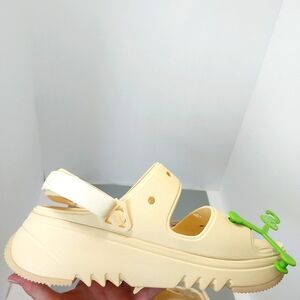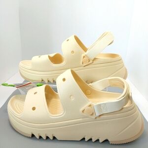 CROCS Hiker Xscape Sandals, NWT, Size 12L|10M, cream/vanilla, platform, adjustable heel strap, new, insole toe to heel 11", widest part of toe 3.5", photos show true condition of shoes