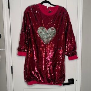 FUN hot pink sequin dress with turquoise gemstone heart. The most unique dress for your special occasion.