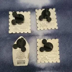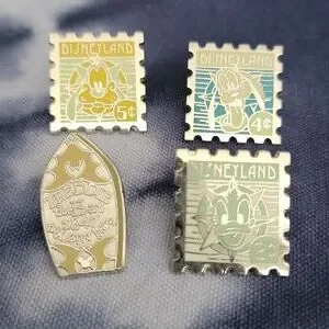 Set of 4 Disney Stamp Pins for Trading, Donald Duck, Pluto, Goofy, and Freddie the Bat