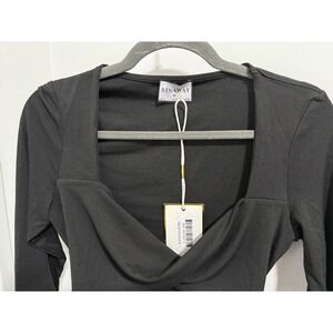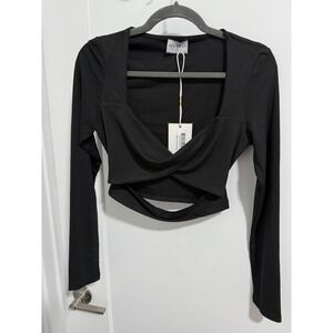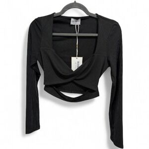 Runaway The Label Annalise Black Ribbed Long Sleeve Cutout Crop Top M NWT
