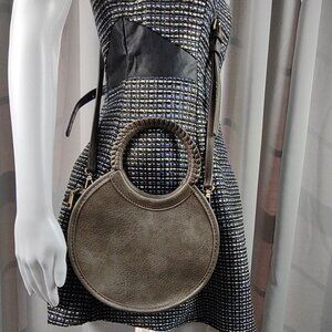 Antik Kraft Round Crossbody Bag Gray Brown Faux Leather Braided Handle