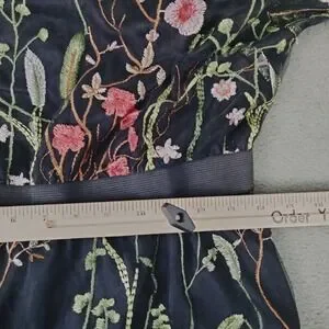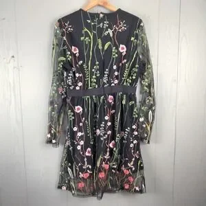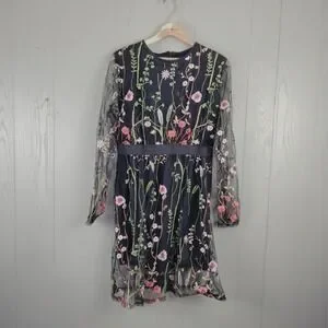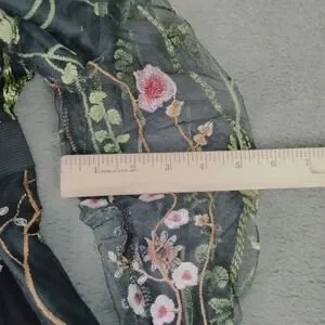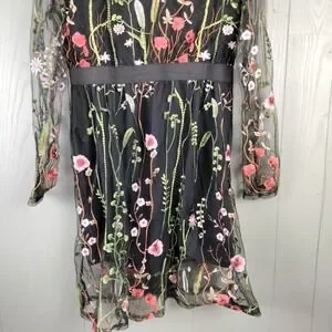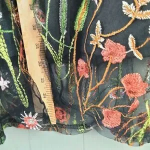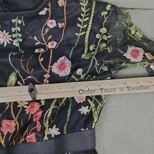 Fairy Grunge Black Mesh Dress S/M Embroidered Flowers Whimsigoth Garden Party