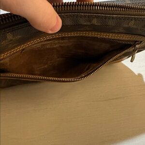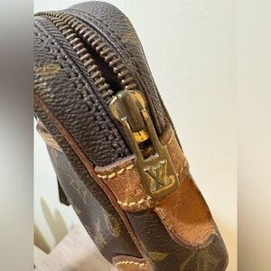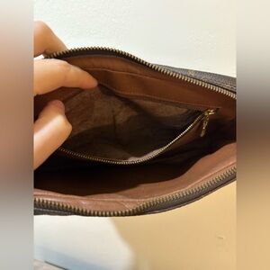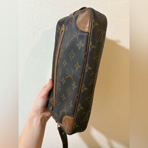 Keywords: Louis Vuitton, monogram, canvas, pouch, clutch, wristlet, designer, luxury, iconic, vintage, cosmetic bag, travel, evening, everyday