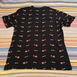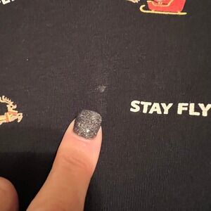 Free Planet Mens XL Black All Over Print Santa Sleigh Stay Fly Graphic T Shirt